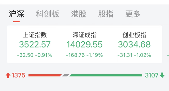 三大股指收盘集体下跌,其中,沪指跌0.91%,报3522.57点。