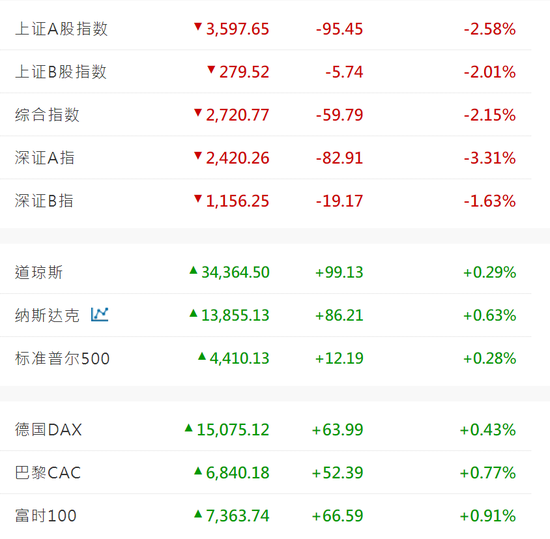 然而,受伤最深的还属A股,各大指数均跌超2%,且基本均以最低点收盘。上证指数收跌2.58%,深证成指跌2.83%,创业板跌2.67%。其次是港股,恒指跌1.7%。恒生科技指数跌2.6%,港股日成交额1464.86亿港元。