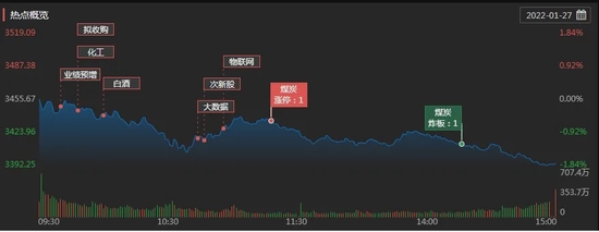 1月27日,A股三大指数持续走弱,集体收跌超1%,截至收盘,上证指数跌1.78%报3394.25点,失守3400点;深证成指跌2.77%报13398.84点,创业板指跌3.25%报2906.76点;沪深两市合计成交额8229亿元;北向资金净卖出146.24亿元;总体来看,两市个股普跌。
