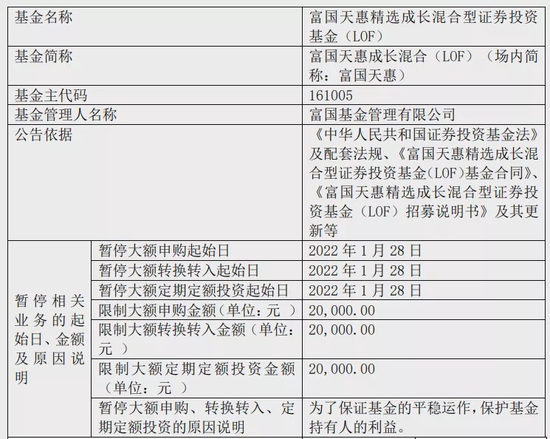 还有富国基金朱少醒管理的富国天惠,此前对单日单账户的限额是1万元,自2022年1月28日起,将单日单账户的限额调整为2万元。