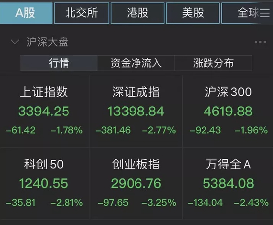 1月27日,三大指数再次调整,截至收盘,上证指数下跌1.78%,深证成指下跌2.77%,创业板指数下跌3.25%。两市4329家个股下跌,110家个股跌停,仅有265家个股上涨。与此同时,#基金##股市#等多个话题冲上微博热搜。