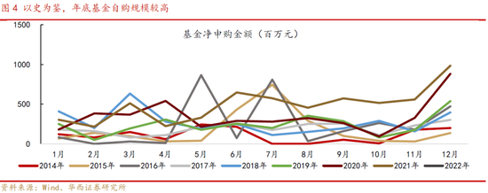 以史为鉴,年底基金自购规模较高,例如:2017年、2019年、2020年、2021年12月基金自购规模为全年最高。另外,在市场短期大幅波动后,基金自购规模也容易放量,例如:2015年7月、2016年5月、2019年12月。