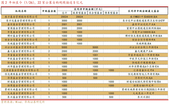 年初至今,公募基金累计自购规模已接近5亿元。根据Wind数据统计,2022年初至2022/1/26,已有22家基金公司的27只基金产品净申购,累计自购规模4.95亿元,其中股票型基金自购规模3.1亿元,混合型基金自购规模1.3亿元。截至2022年1月26日,公募基金过去三个月累计净申购金额约20.4亿元,自购规模位于2013年以来新高。