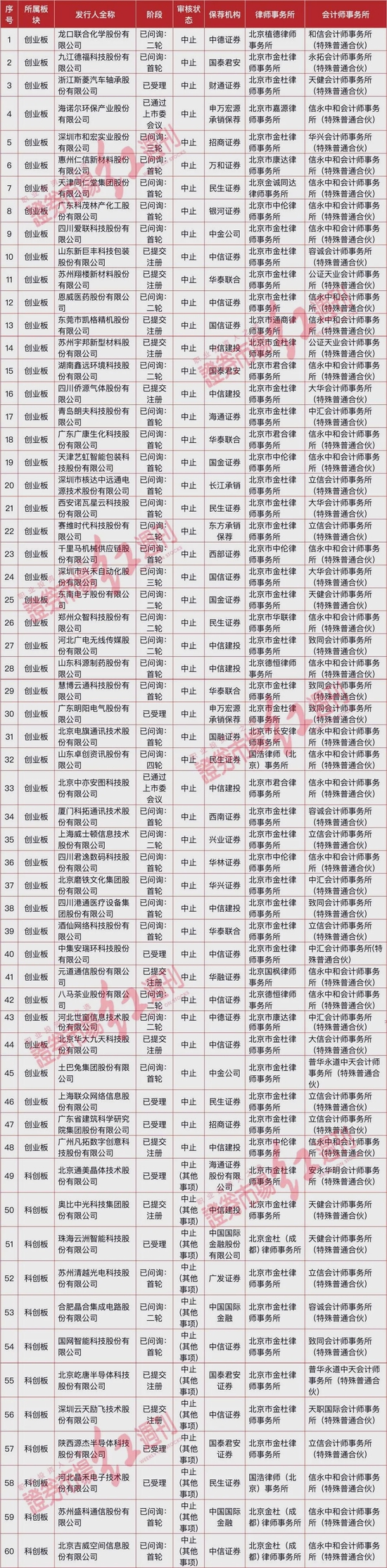 附表:1月26日因中介机构被证监会立案而中止的IPO企业名单