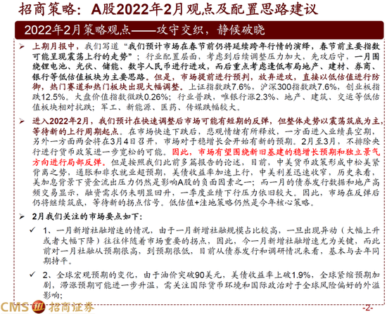 【招商策略】攻守交织,静候破晓——A股2022年2月观点及配置建议