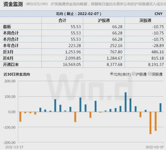 Wind数据显示,今日沪深两市主力资金全天净流出21.94亿元。其中创业板主力资金净流出32.62亿元;沪深300主力资金净流入23.49亿元。北上资金净买入55.53亿元,日内沪、深股通走势大幅分化,沪股通净买入66.28亿元,深股通净卖出10.76亿元。聪明钱还没有“上头”。