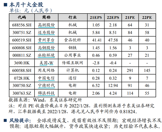 2月,东吴证券推荐的金股为:高测股份、迈为股份、贵州茅台、马钢股份、冰轮环境、美团-W、用友网络、中国电信、宁德时代、锦浪科技。