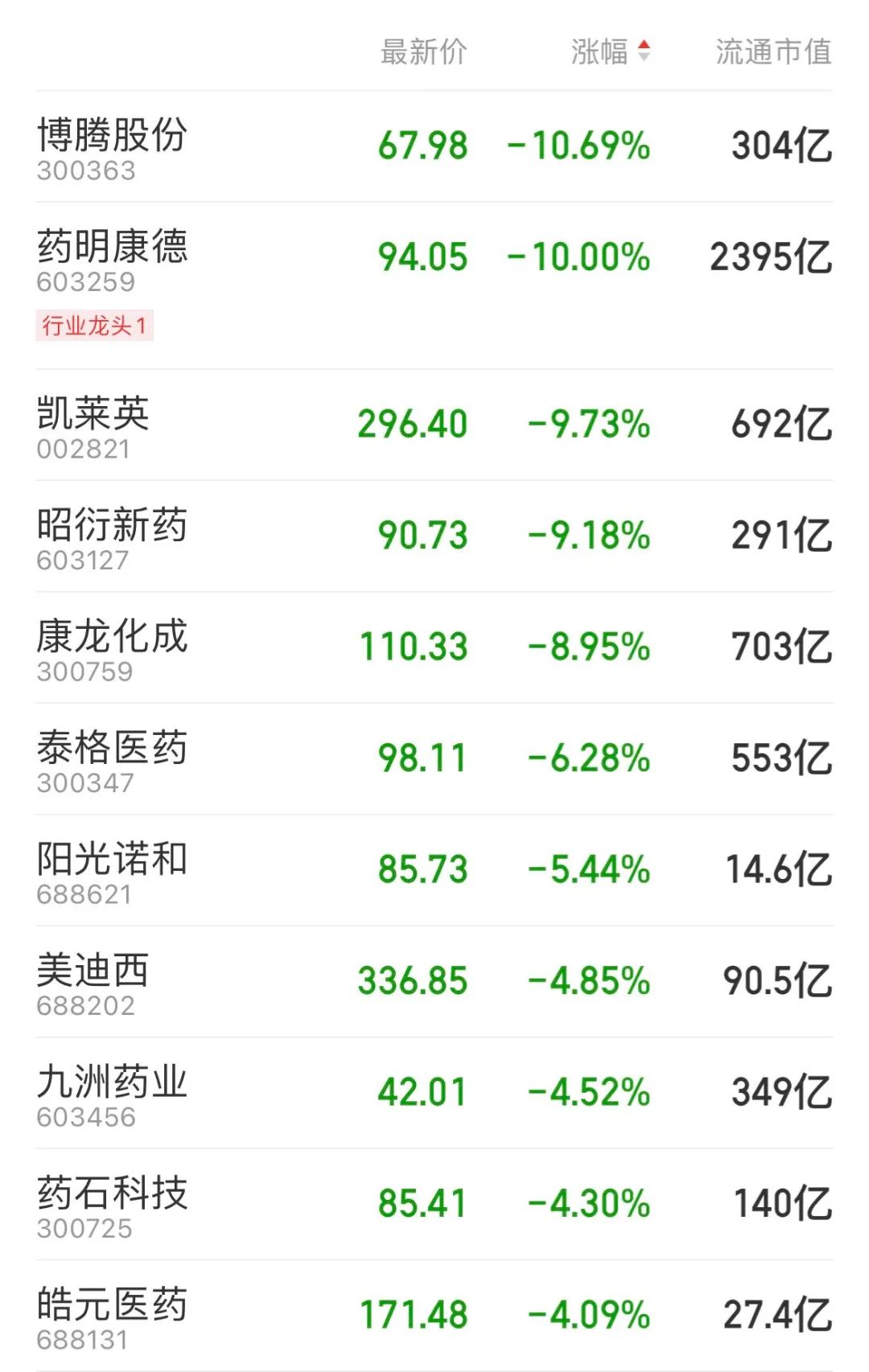 药明康德直接闪崩跌停,博腾股份(维权)跌超10%,凯莱英、康龙化成、昭衍新药等跌超8%;宁德时代跌近9%,星源材质、中科电气、联赢激光等多股跌超10%。