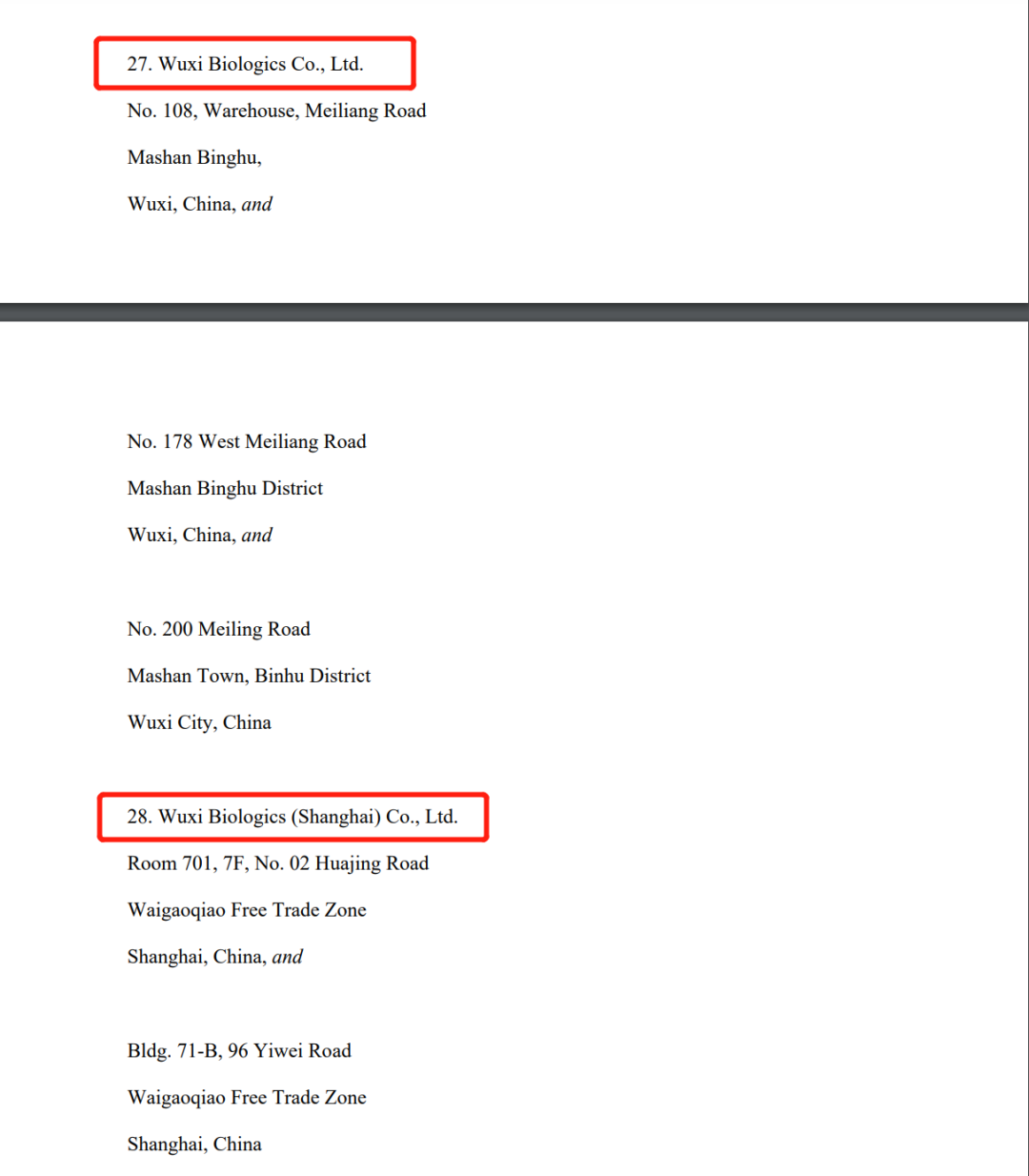 在上述“未经核实名单(UVL)”中,CDMO公司药明生物和药明生物(上海)在列。公开资料显示,药明康德和药明生物同属同一实际控制人。