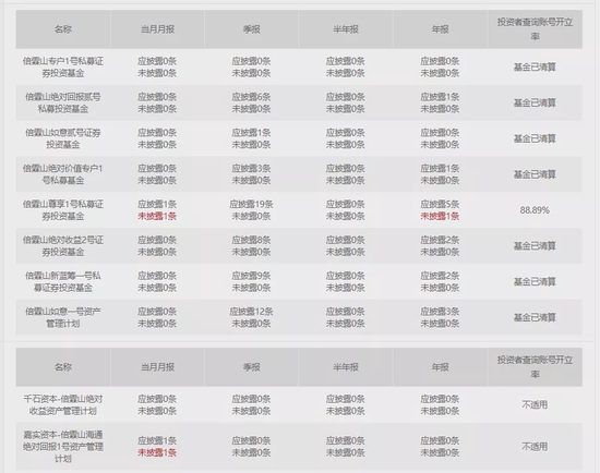 基金业协会数据显示,上海倍霖山投资在协会登记备案的私募产品合计10只,其中8只产品已经清算。已清算的产品包括倍霖山专户1号私募证券投资基金、倍霖山绝对回报贰号私募投资基金、倍霖山如意贰号证券投资基金、倍霖山绝对价值专户1号私募基金、倍霖山绝对收益2号证券投资基金、倍霖山新蓝筹一号私募证券投资基金、倍霖山如意一号资产管理计划等。