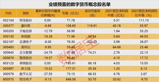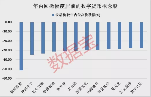 多只数字货币概念股年内深度回调