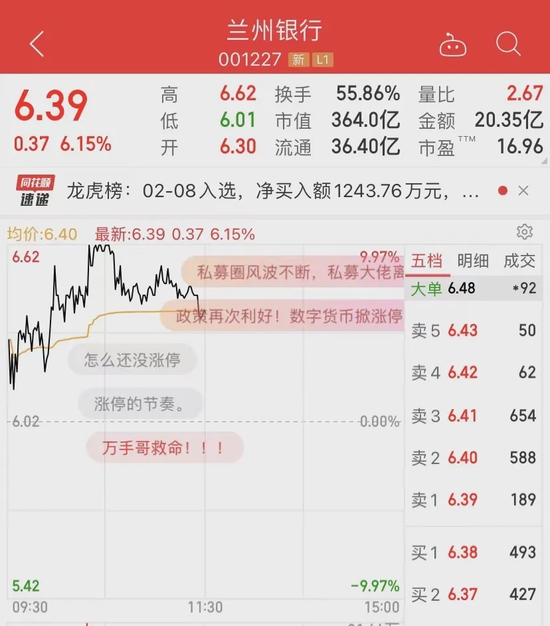 虎年开市第三天,经历了前两天惊心动魄之后,今天上午虽然整体上稍有平稳,但个股和板块还是非常多的跌宕起伏。数字货币概念股疯涨掀起涨停潮,猪肉股也在暴动,一万多亿的次新股电信巨头中国移动涨停,创出历史新高。兰州银行盘中连续两涨停。千亿市值的龙头股恒立液压却盘中跌停。