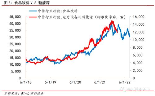关于第一点,我们需要说明一下。回头来看,尽管茅台在2021年大幅回落的导火索是美债上行,但除了高估值以外,背后的深层次原因是2021年的疫情反复以及经济基本面回落导致的消费压力。这一趋势在2021全年都没有明显的改变(当然,疫情对消费的冲击在8月达到高峰,因此食品饮料在8月底见底)。而对于宁德时代而言,中央经济工作会议对“双碳”政策一定程度的调整以及在“稳增长”大背景下对创新紧迫性一定程度的淡化是关键的制约力量,而且将贯穿全年。