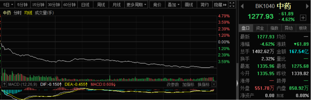 A股市场自然难以幸免,三大指数收盘全线飘绿。上午开盘时段,九安医疗一则公告直接将该股打到接近跌停板;中午时分,中药集采的消息突然传来,中药板块全线大跌。整体来看,A股市场上涨的股票非常少,赚钱效应非常弱。