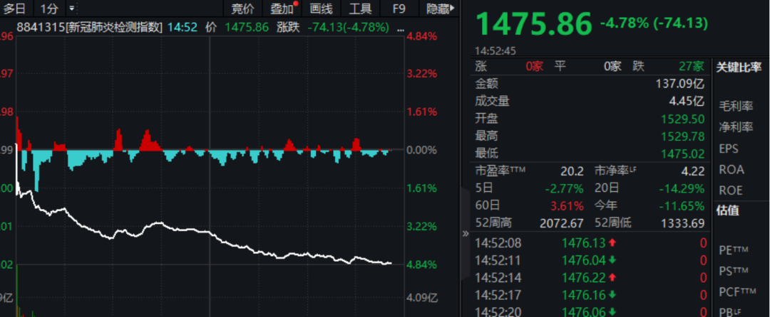 再加上福奇表示,美国疫情即将结束。新冠检测板块集体杀跌。