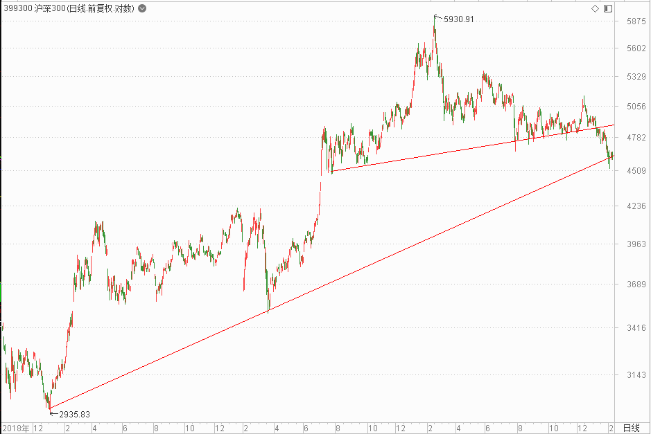 从目前的上证指数来看,位于120日、250日均线之下,一条中期支撑线上方,如果跌破下面这条支撑线,下一个支撑估计在3000点附近。