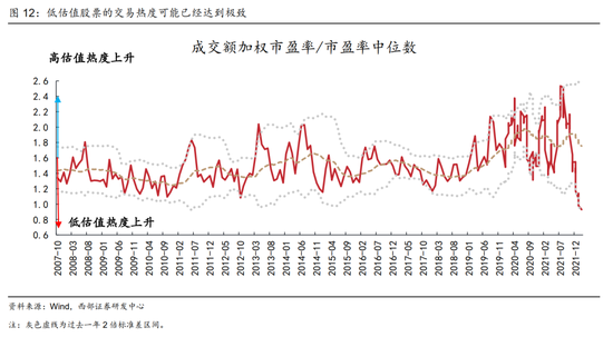 而对于国内市场而言,虽然市场仍然存在较多分歧,但是今年上半年宽信用仍然是最具确定性的事情。另外一方面,市场仍然需要耐心等待货币政策“以我为主”的验证,这可能是当前市场阶段性底部出现的必要条件。对于当前的市场而言,从我们跟踪的市场情绪指标来看,市场已经从对于高估值股票的交易拥堵快速切换到对于低估值的股票的热捧。这样一个过程也能已经达到一个较为极致的水平,后续市场将逐步回归均衡。而在去年8月,我们也同样依靠这个指标提示了部分成长板块阶段性过热的风险。