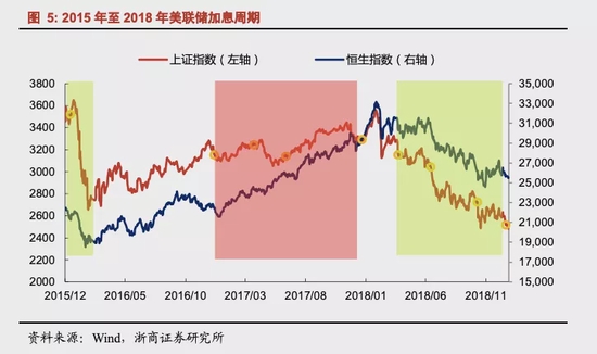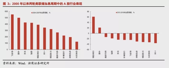 在2015年12月至2018年12月的美联储加息周期中,A股的日常消费、金融、医疗保健、能源、材料等行业具备比较优势。