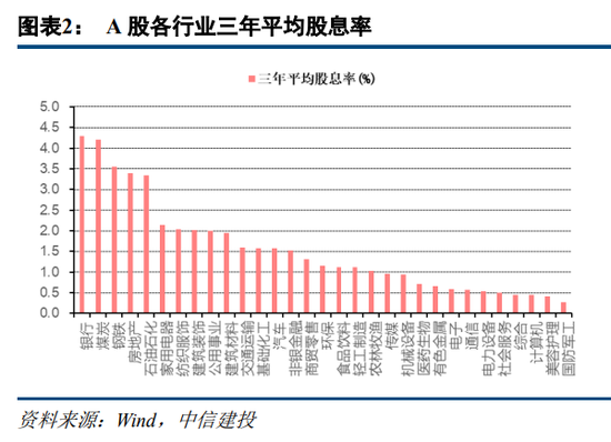 股票价格与股票红利成正比,高股息带来的高额再投资收益,是其高股息策略长期有效的基础。高股息行业主要分布在金融地产以及具备公用事业属性的行业,以及部分周期性行业的龙头公司。周期龙头进行一体化扩张,增加对上下游以及成本方面的掌控力,凭借自身的规模优势和成本优势,获得了更多的抵抗宏观经济与市场波动风险的能力,呈现出“周期蓝筹化”的特征,经营产生稳定充沛的现金流,并且由于资本开支高峰期已过,也具备较高的分红水平。