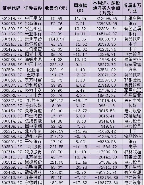 表:本周(2月7日-11日)沪、深股通前十大成交活跃股交易情况