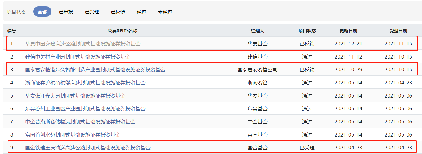 说明:深交所公募REITs项目动态(截至2022年2月14日) 来源:深交所网站截图