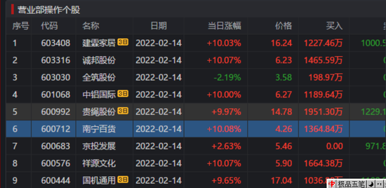 再看2月15日这些公司的表现的表现,多数是冲高回落或者大跌,如天保基建、建霖家居、贵绳股份、南宁百货由涨停直接遭遇核按钮。再看龙虎榜,基本上都有华鑫上海分公司出货的身影。