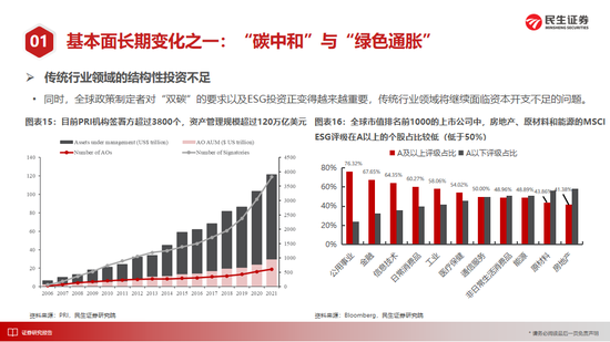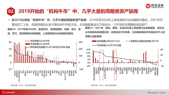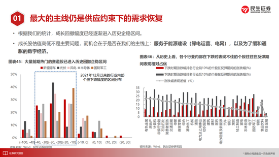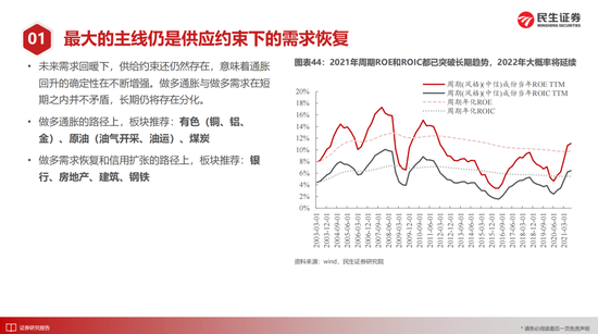 需要强调的是:躲避机构并不是简单从博弈出发,恰恰相反,正是因为过去3-5年全市场机构投资者对过去时代的有效定价,对于过往经济基本面进行了充分的价值发现。而当下环境重新变化,传统经济以及过往那些被遗忘的角落应该被更多关注。我们最看好的方向在于资源类周期和金融,它们之中做多通胀的确定性会比需求本身更强:有色(铜、金、铝)、原油(油气开采、油运)、煤炭;银行、房地产、建筑、钢铁。随着中低收入人群的现状获得更多关注,消费的新大陆也会出现,我们关注其中中低端、二线、区域品牌。成长股尽管有阶段性反弹的可能,但我们仍然建议方向上应该位于上述基本面的路径之上,其中相对占优的是能源建设(绿电和电网),以及缓和通胀矛盾的数字经济。