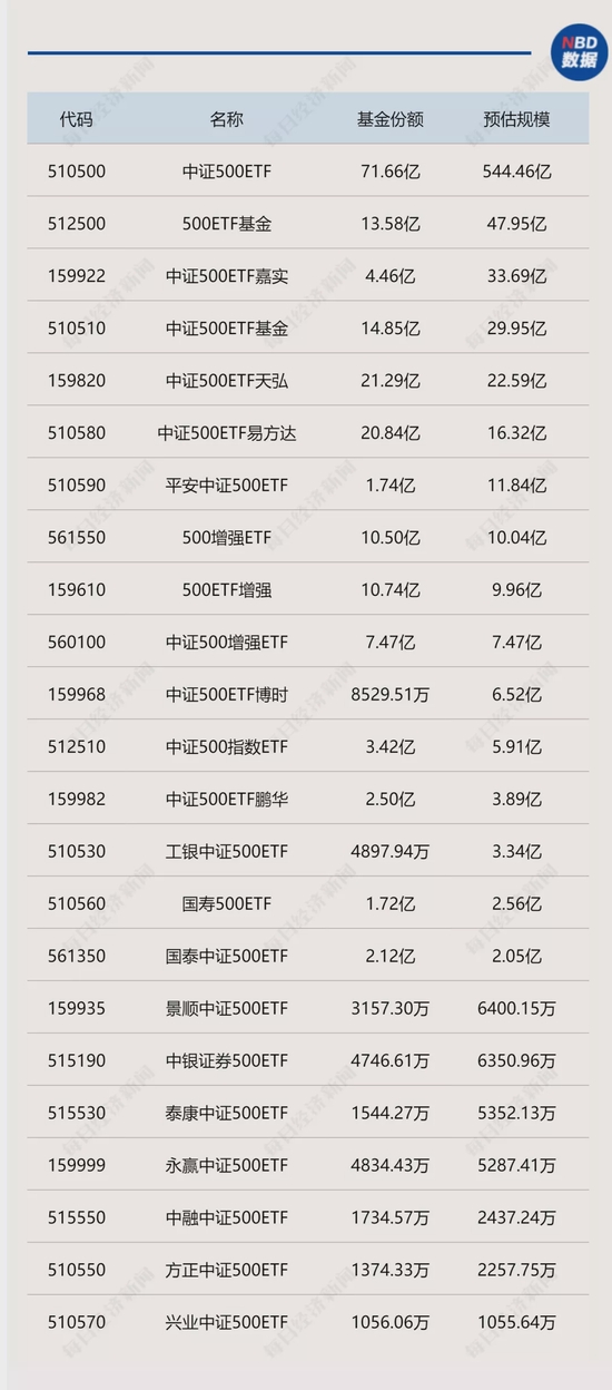 23只ETF扎堆中证500