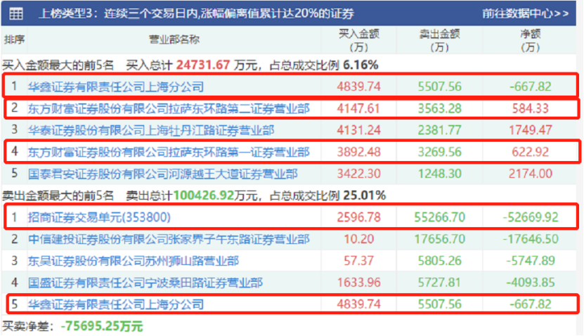 盘后公布的三日榜数据显示,龙虎榜资金净流出7.56亿元。有“量化大本营”之称的华鑫证券上海分公司位列买一和卖五席位,买入4839万元的同时卖出5507万元。有“散户大本营”之称的东方财富证券拉萨营业部分列买二和买四席位,同样大举做T。主卖方面,卖一招商证券交易单元大举净卖出5.27亿元。