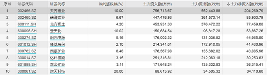 主力资金抢筹锂矿股