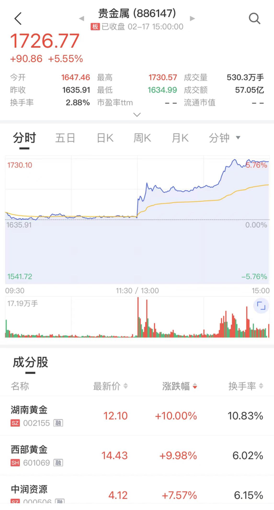 贵金属板块午后持续拉升