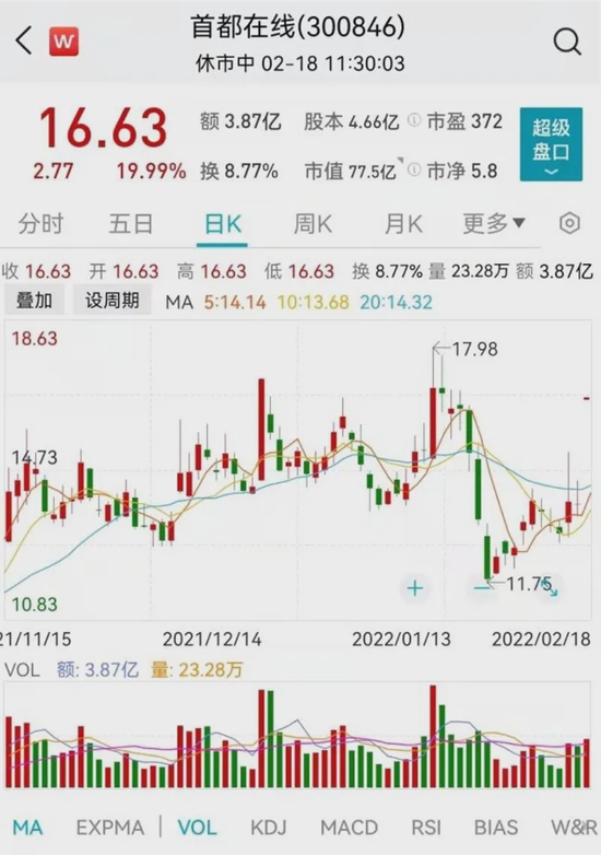 首都在线日线走势