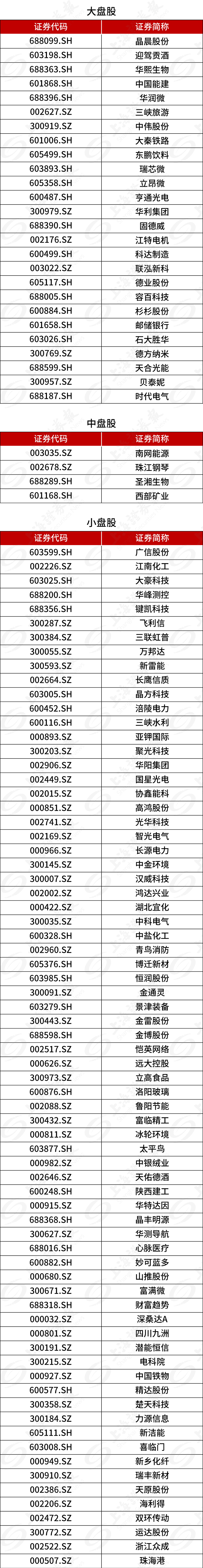 具体来看富时GEIS本次新纳入102只中国A股,其中大盘A股共26只,中盘A股4只,小盘A股72只。此外还有部分此前已纳入的A股标的因市值大小变动进行了分类调整。