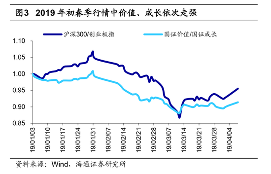 政策面和一季报业绩预告或是价值向成长切换的催化剂。我们在《价值到成长的信号-20220220》中提出,回顾历史,政策和业绩预告是市场风格从价值走向成长的催化剂:如2012年《电子信息制造业“十二五”发展规划》等相关科技政策出台,风格从价值向成长切换,春季行情后期电子、计算机等科技行业涨幅居前;又如2018年,工信部等提出加快推出 5G 商用牌照,支持有条件的地方建设信息消费体验中心,叠加创业板2018年年报业绩预告大减、业绩见底、利空出尽,市场风格开始转向成长。本轮春季行情中,政策面角度,新基建是稳增长政策的重要组成部分,具体包括低碳经济和数字经济等。业绩预告角度,在稳增长政策推动下,相关板块有望从中受益,3-4月是A股一季报业绩预告披露的密集期,若相关上市公司业绩得到验证,则有望提振市场风险偏好。