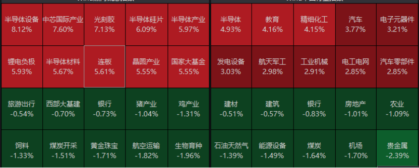 从结构来看,东数西算持续涨停潮,贵广网络、美利云、宁波建工等连续一字涨停。半导体产业链爆发,江丰电子、芯源微、北方华创、江化微、天龙股份、中瓷电子、露笑科技、晶方科技等涨停,半导体设备指数狂涨8.12%。