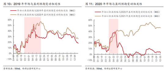 业绩窗口期盈利变动对于市场的影响作用更加显著。从申万一级行业12个月滚动涨跌幅与盈利预期变动幅度的相关性可以看出,行业景气预期在市场定价中的作用呈现出季节性特征。2017年以来A股市场涨幅与盈利预期变动的相关性在年报、一季报与中报披露的窗口期出现较为明显的上升,但在业绩真空期反而呈现出稳定甚至下滑的趋势。这也符合常理:毕竟年报、一季报及中报是A股上市公司盈利定价的重要资料来源,在A股业绩披露完毕之前资金对上市公司业绩预期进行积极博弈,并体现在股价的上涨与下跌之中,直至预期落地。