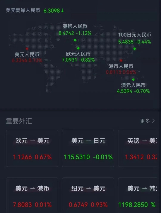 周五,美元指数跌0.56%报96.54,非美货币普遍上涨,欧元兑美元涨0.75%报1.1273,英镑兑美元涨0.22%报1.3413,澳元兑美元涨1.09%报0.7230,美元兑日元跌0.01%报115.52,美元兑瑞郎跌0.05%报0.9256,离岸人民币兑美元涨105个基点报6.3109。