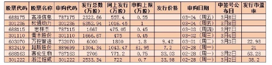 表:下周(2月28日-3月4日)8只新股申购情况