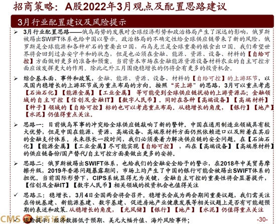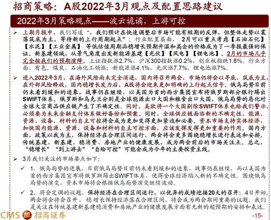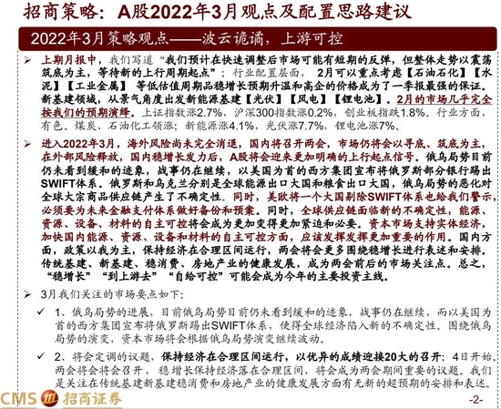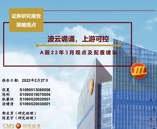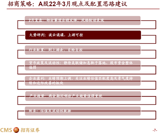 原标题:【招商策略】波云诡谲,上游可控——A股2022年3月观点及配置建议
