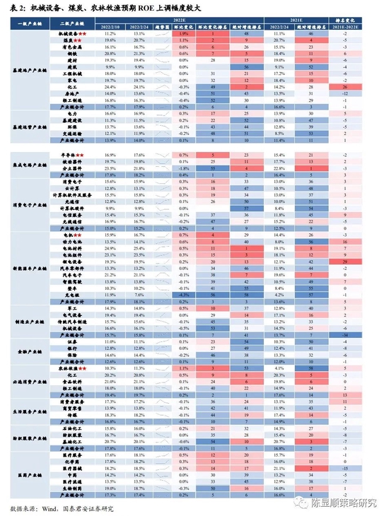 2.2. ROE:机械设备、煤炭、农林牧渔预期ROE上调