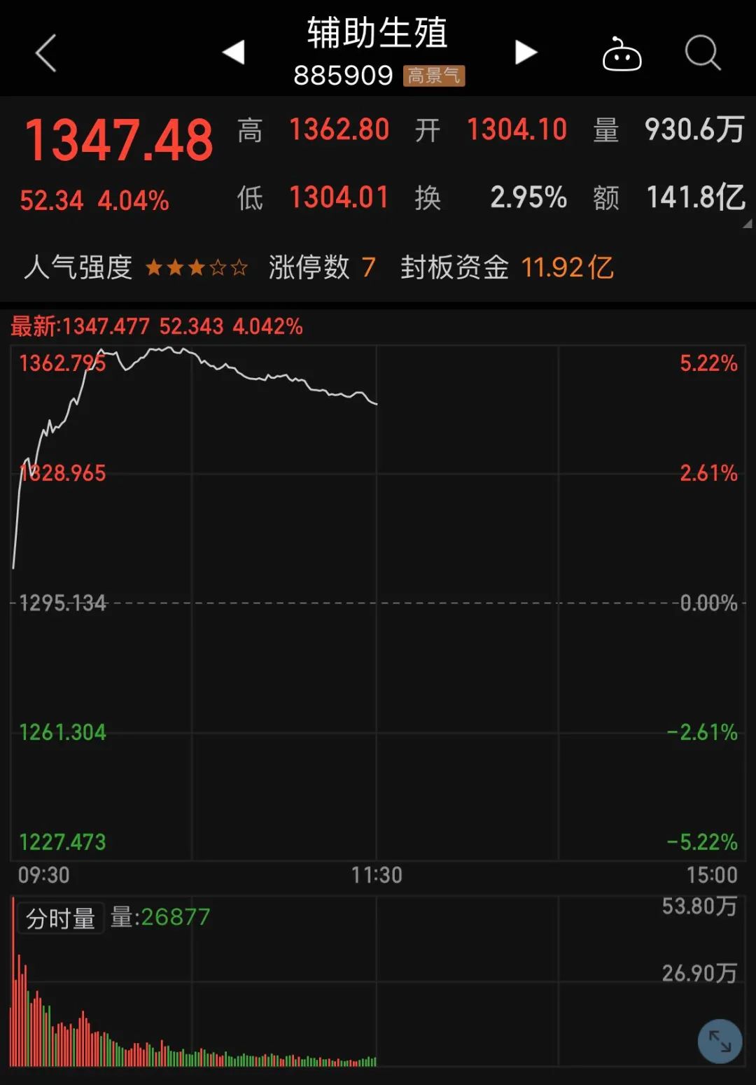 医药股走强,辅助生殖概念指数大涨超4%。