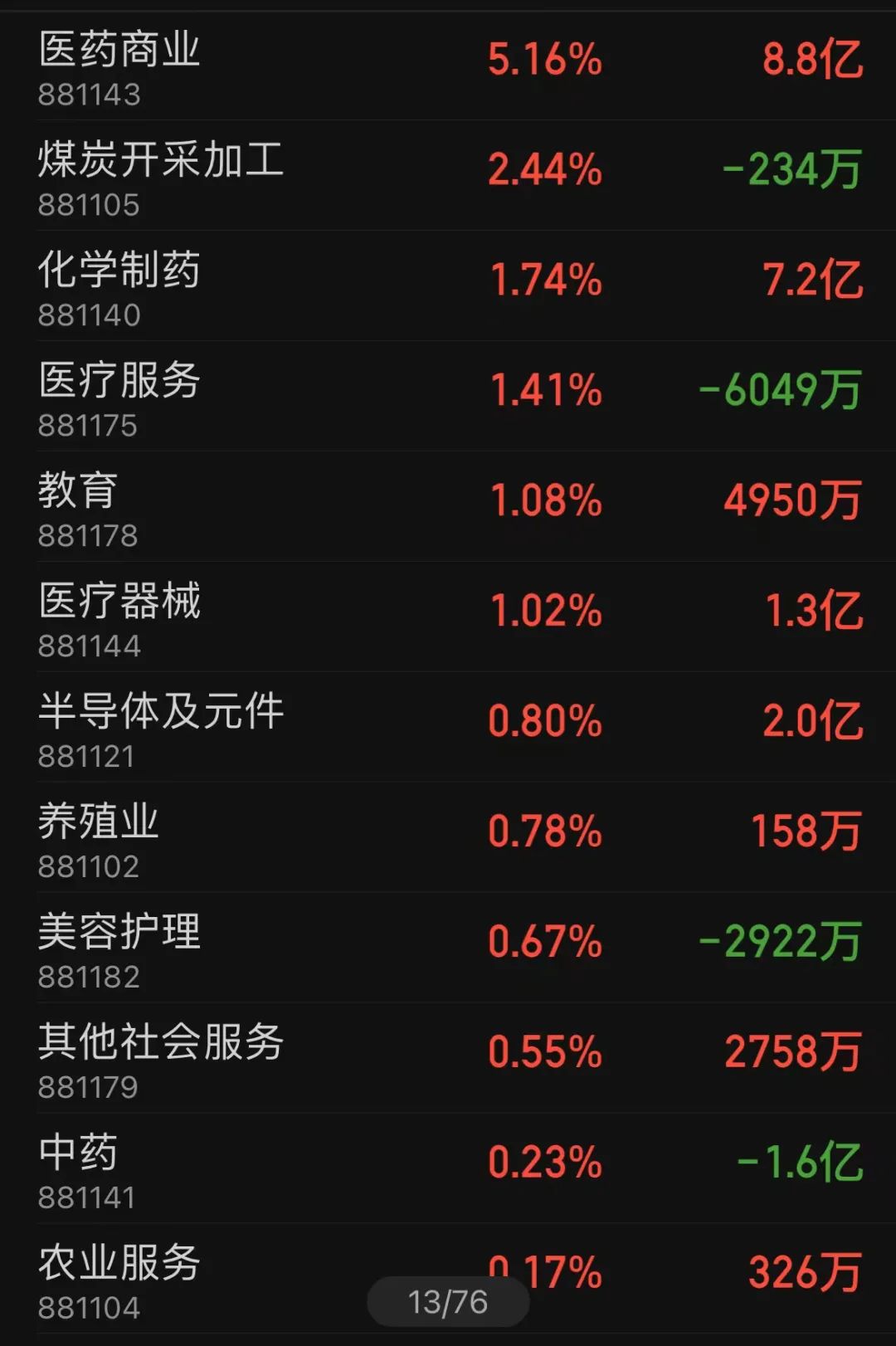 盘面上,医药股早盘集体走强,医药商业、辅助生殖、煤炭、养殖、医美等板块涨幅居前,此前连续大涨的油气开采、天然气、建筑装饰、港口、东数西算等板块和概念回调。