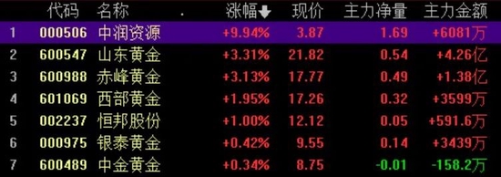 随着近期黄金价格的攀升,黄金股也备受投资者热捧,贵金属板块全天涨幅居前,中润资源(维权)涨停,山东黄金、赤峰黄金涨幅均超3%。