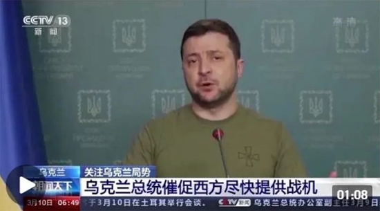在当地时间9日发布的视频讲话中,泽连斯基再次催促西方国家:“不要推卸责任了,把飞机给乌克兰送来”。