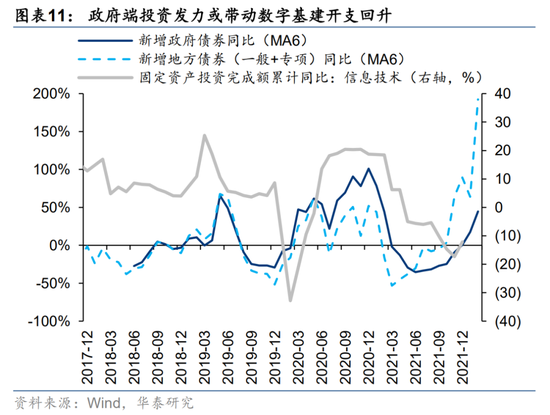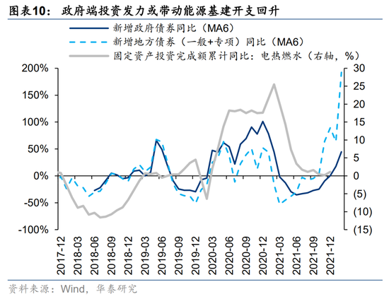 分部门来看,2月B/C端弱+G端强的格局延续。1)toC端:2月居民短贷增速较1月继续回落,反映广义可选消费和toC制造偏弱;2月居民中长期贷款增速较1月大幅回落,居民加杠杆意愿弱,对应除保障房外的地产链景气下行压力仍大;2)toB端:2月扣除地产开发贷后的企业中长期融资增速继续筑底,从企业中长期融资→制造业货币资金→制造业利润增速的传导顺序来看,toB制造景气拐点尚需等待;3)toG端:2月新增政府债、地方债增速延续2H21以来的升势,其中新增地方债增速创17年以来最高,对应保障房、能源基建、数字基建等toG制造阶段性订单红利。