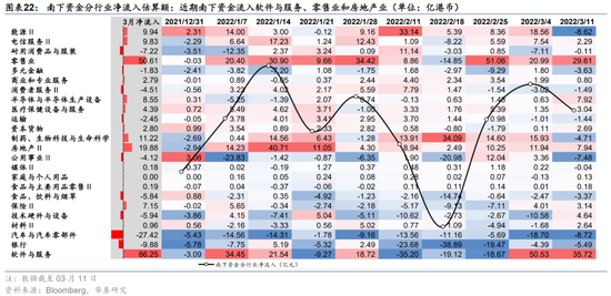 上周追踪新兴市场权益的前50大ETF净流出3.3亿美元;南下资金净流入149.6亿港币,较上一周净流入(净流入97.5亿港币)大幅上涨。从分行业南下资金的分布来看,软件服务(+35.72亿港币)、零售业(+29.61亿港币)、房地产Ⅱ(+7.94亿港币)、半导体与半导体生产设备(+7.92亿港币)、技术硬件与设备(+4.64亿港币)板块净流入居前;汽车与汽车零部件(-8.72亿港币)、能源Ⅱ(-8.62亿港币)、公用事业Ⅱ(-7.48亿港币)等板块净流出居前。