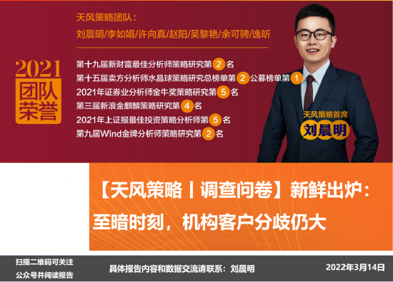 原标题:【天风策略丨调查问卷】新鲜出炉:至暗时刻,机构客户分歧仍大