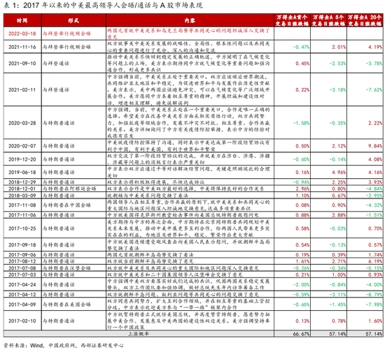 近期A股市场显著调整,对于海外局势、国内疫情以及宽松政策的落空压制市场风险偏好。从本周来看,有一些信号开始转向积极。海外方面,随着俄乌冲突的担忧趋缓,大宗商品价格回落,以及美联储加息靴子落地,全球股市普遍止跌回升。3月16日美联储3月议息会议如期加息25BP,下修了经济预测且上修PCE预测,并暗示今年将加息7次,符合市场预期,避险情绪有所下降,全球风险资产有望迎来喘息期。中美关系也传来新动向,3月14日中美高层在意大利罗马会晤后,3月18日晚国家主席习近平应约同美国总统拜登视频通话,就中美关系和双方共同关心的问题交换意见。从历史经验来看,A股市场在2017年以来历次中美领导人通话或会晤后多表现相对积极,通话/会晤结束后的首个交易日万得全A有66.7%的概率出现上涨,后5个交易日和后20个交易日也均有57.1%的上涨概率。