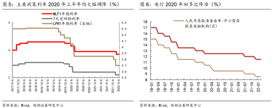 积极的货币政策推动了信用周期的企稳。自2019年以来整体货币政策一直处于宽松周期之中,虽然有19年底因为非洲猪瘟引发的对于通胀担忧,但是由于国际油价依然处于低位,结构性通胀并没有引起央行的过度担忧,到2020年上半年,整体货币政策依然延续了宽松的格局,所以在疫情后央行快速出手,在2月中旬调降了OMO,MLF,LPR等主要政策利率。随后在3月13日宣布定向降准。