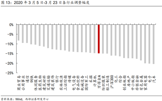第二轮市场冲击主要来自海外风险资产的流动性冲击。3月以来,随着欧美发达经济体疫情的快速传播,首先受到冲击的是原油,在需求预期的急剧恶化下,原油价格的大幅下跌,现货价格一路由年初的65美元/桶,下跌到3月中旬的22美元/桶,而期货价格更是创下了绝无仅有的负价格。随着油价的大幅下跌,引发了全球风险资产的共振,带动A股市场也跟随调整。